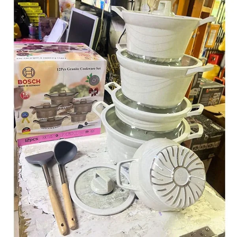 Upgrade your kitchen with the Bosch 10-Piece Granite Non-Stick Cookware Set, designed for everyday performance, durability, and elegant style. Featuring a premium granite-coated non-stick interior, this cookware ensures effortless food release, healthier low-oil cooking, and easy cleaning after every meal.